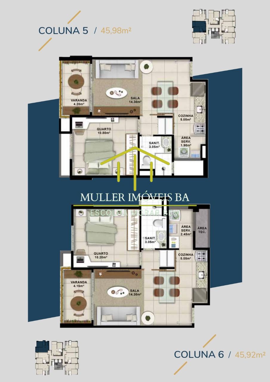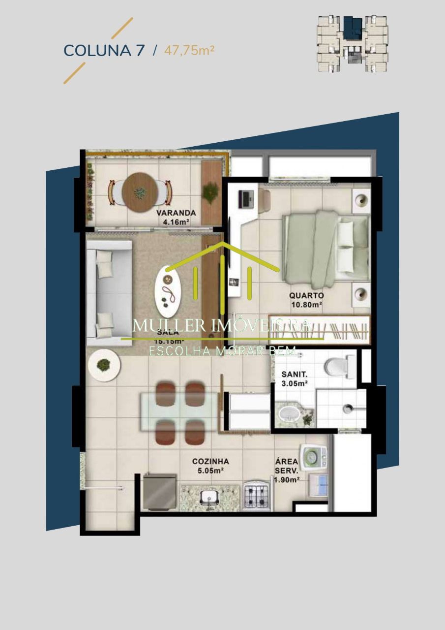 QUARTO / LIVING E VARANDA / COZINHA AMERICANA COM GÁS PARA FOGÃO / ÁREA DE SERVIÇO / PONTO PARA SPLIT NA SALA E NO QUARTO / ÁREA TÉCNICA /